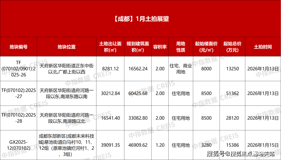 最初,此中1月13日出让3天府新区华阳街道涉宅用地,