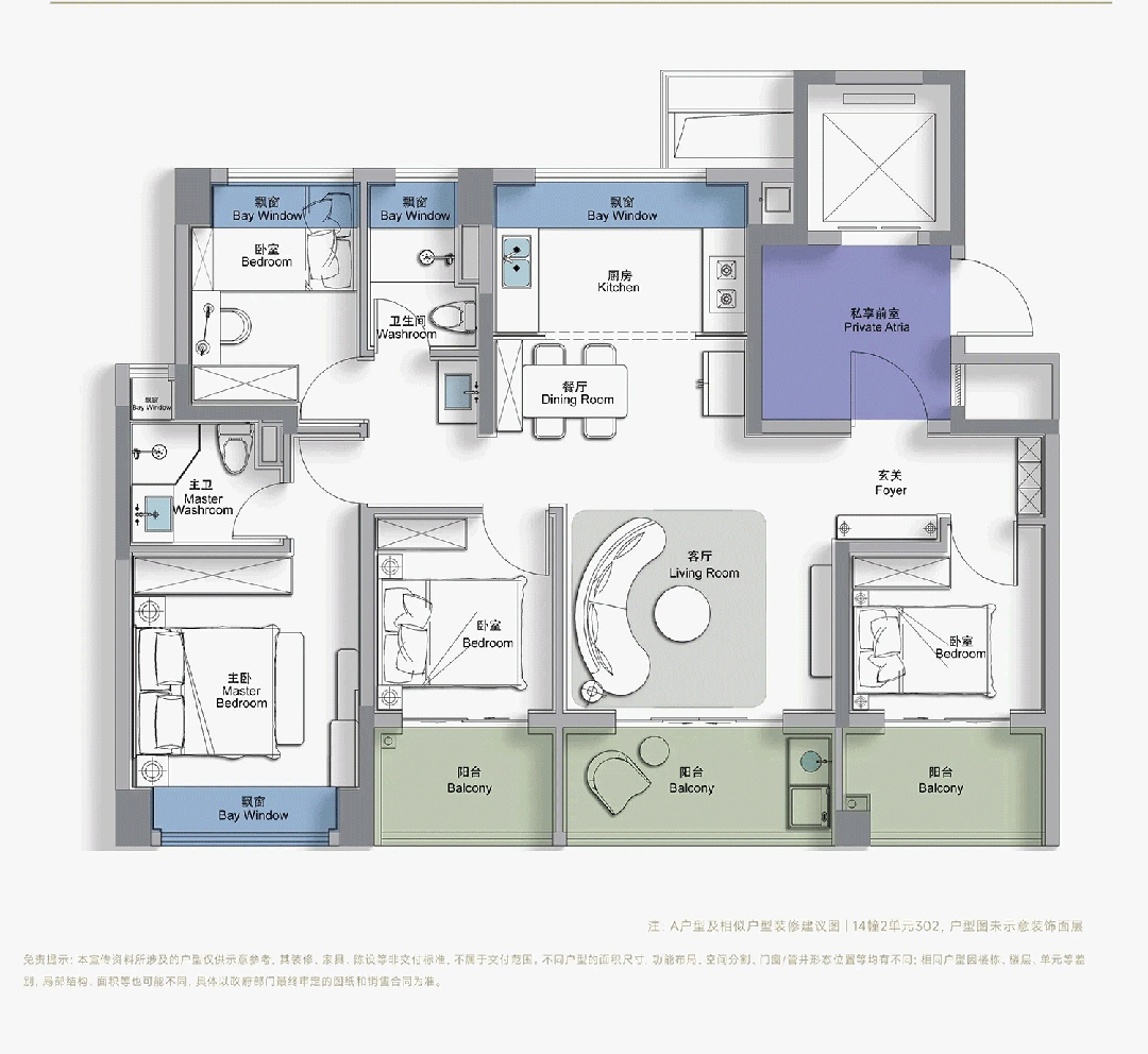 光着3个阳台的面积就高达约15㎡。